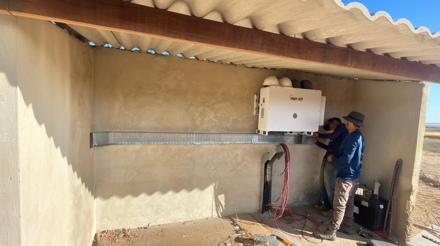 Despite the rocky start, the crew worked with impressive speed and precision — leveling the land, installing foundations, mounting the panels, and building the secure unit to house the inverters.
